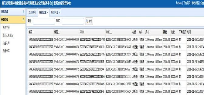 1月26日上午11:50分,第一票通過嵌入RFID芯片的標(biāo)準(zhǔn)化托盤(1.2m*1.0m)帶板運(yùn)輸業(yè)務(wù),順利抵達(dá)港務(wù)物流海滄嵩嶼拼箱中心,并成功通過中托互聯(lián)平臺(tái)(廈門市物流標(biāo)準(zhǔn)化托盤循環(huán)共用公共服務(wù)平臺(tái))實(shí)現(xiàn)托盤電子信息化管理,港務(wù)物流標(biāo)準(zhǔn)化托盤共用體系初步建立。