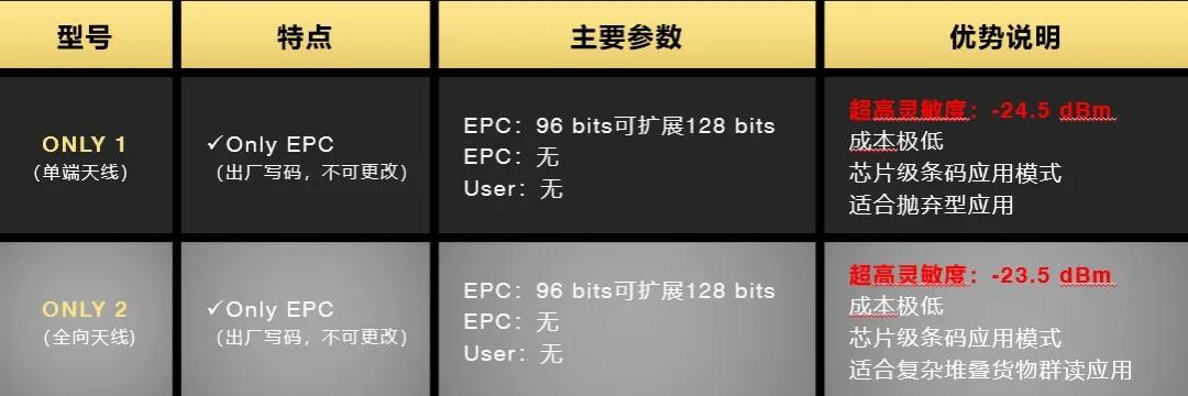 凱路威針對貨物面單和拋棄型標(biāo)簽研發(fā)的ONLY系列只讀芯片,靈敏度達(dá)到業(yè)界最高的-24.5dBm,成本達(dá)到業(yè)界最低,適用于各種復(fù)雜堆疊和快速群讀場景,是未來千億級郵包識別市場、萬億級服裝和商品管理市場的最優(yōu)之選。